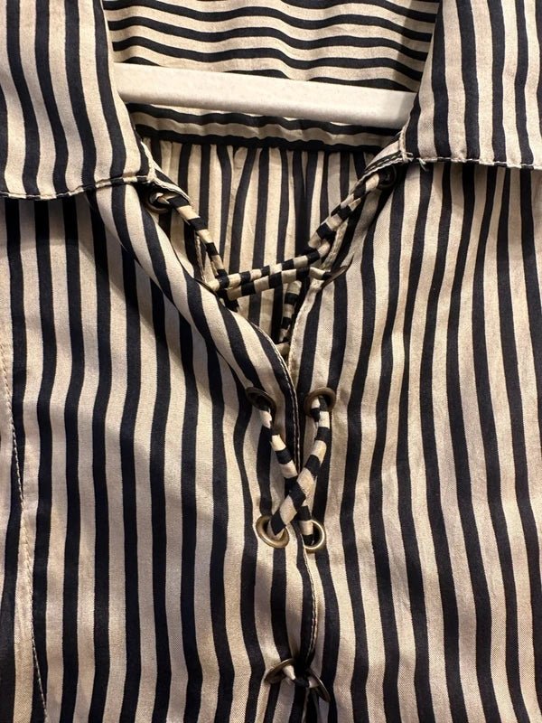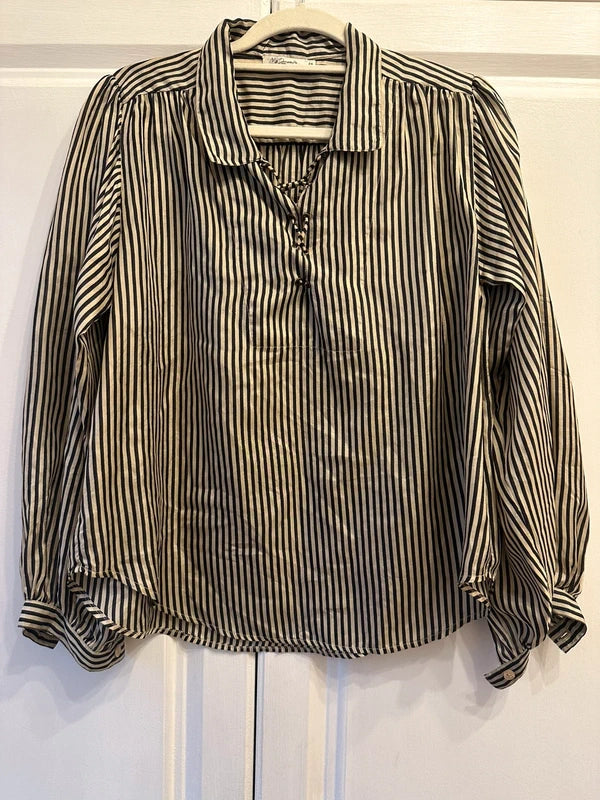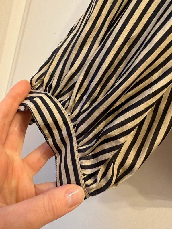 Stunning Never wornMes Demoiselles 100% Silk striped Designer Shirt Blouse 36 UK8